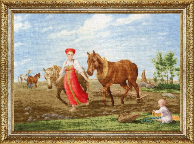 Набор для вышивания разработан по мотивам одноимённой картины известного русского художника А. Г. Венецианова. Освобожденная от оков зимних холодов земля радостно встречает красавицу - весну. И вот уже она сама в образе красивой юной девушки порхает над пашней, ведя под уздцы двух норовистых лошадей. Появилась зеленая травка, небо стало высоким и бездонным, по нему плывут легкие и невесомые пушистые облака. Воздух наполнен весенней свежестью, и радость от встречи с тёплыми днями переполняет сердце и душу.| Скидка | 3 % | 5 % | 7 % | 10 % | 15 % |