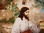Христос, сидящий на скромном стуле, излучает спокойствие и мудрость.